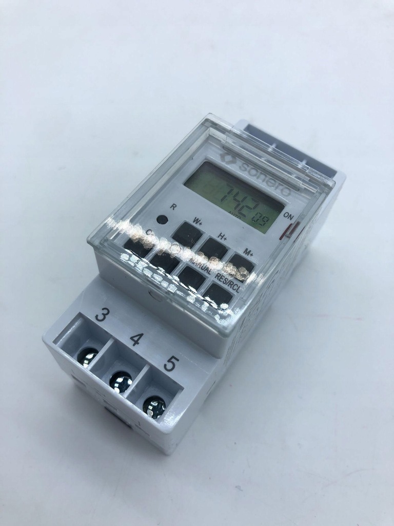 Cyfrowy zegar sterujący sonero z wyświetlaczem LCD do montażu na szynie/panelu sterowania charakteryzuje się dużą wygodą, łatwą obsługą i najwyższym poziomem bezpieczeństwa dla Twojego gospodarstwa domowego