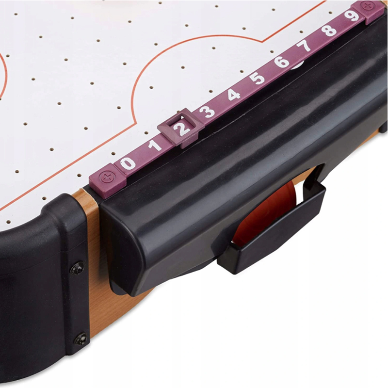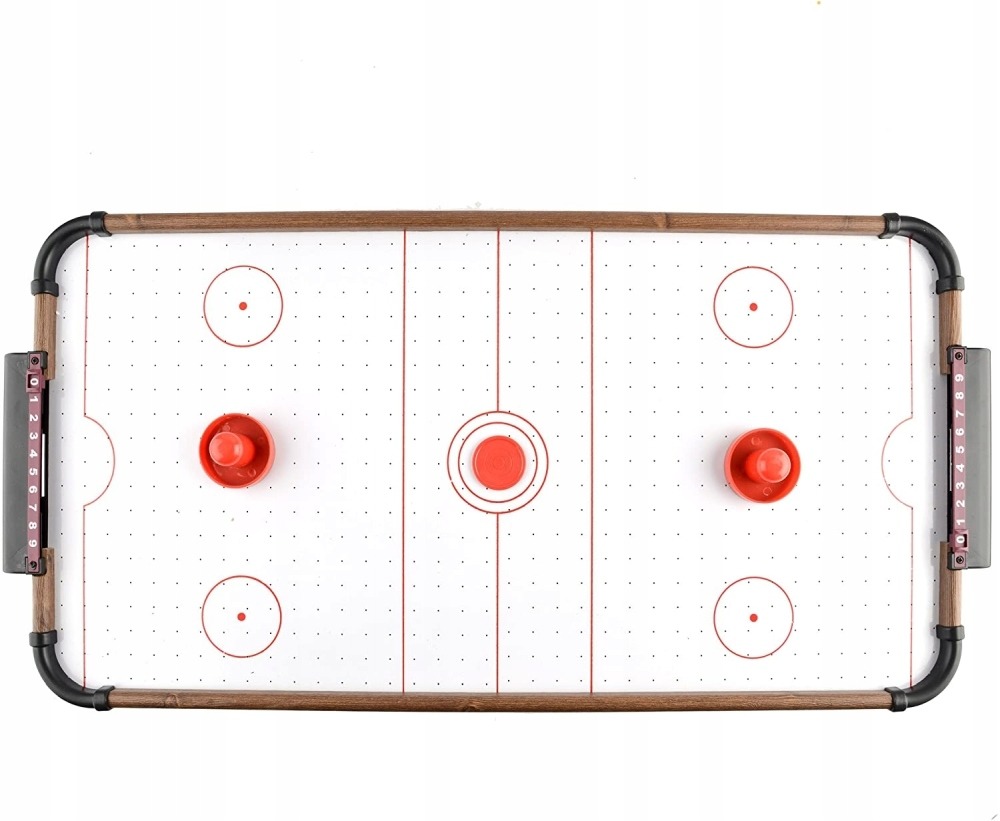 Stół wykonany jest solidnie z grubej płyty nadającej mu odpowiednią sztywność. Nad bramkami umieszczone są łatwe w obsłudze liczniki punktów. Jest to wersja bez nóżek, która pozwoli postwić stół na dowolnej płaskiej potwierzchni.
