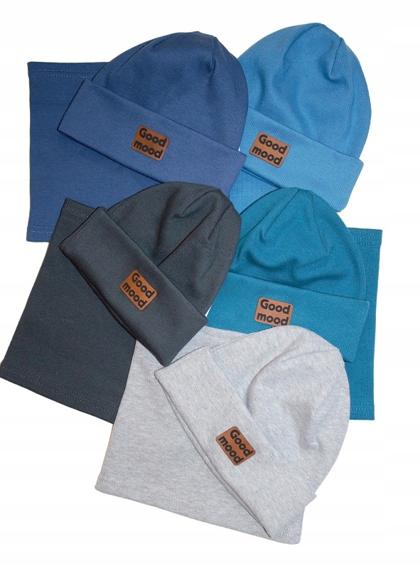 Czapeczka oraz komin uszyte z polskiej, oddychającej bawełny typu prążek, która minimalizuje pocenie się głowy Twojego Dziecka.