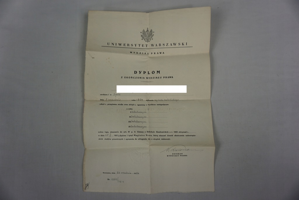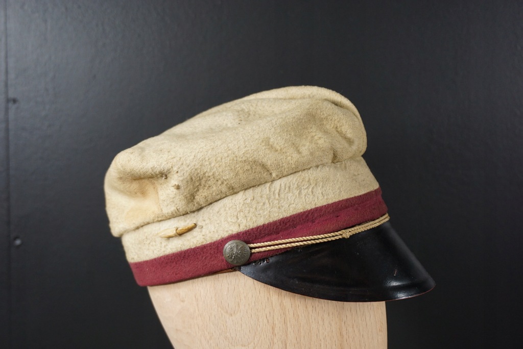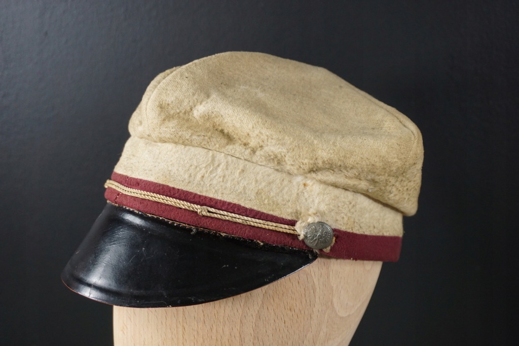 Czapka studenta Uniwersytetu Warszawskiego. Pozyskana z dyplomem ukończenia wydziału prawa z 1934r. Guziki z orłem z koroną. Stan ukazany na foto. Dyplom dostępny na innej aukcji.