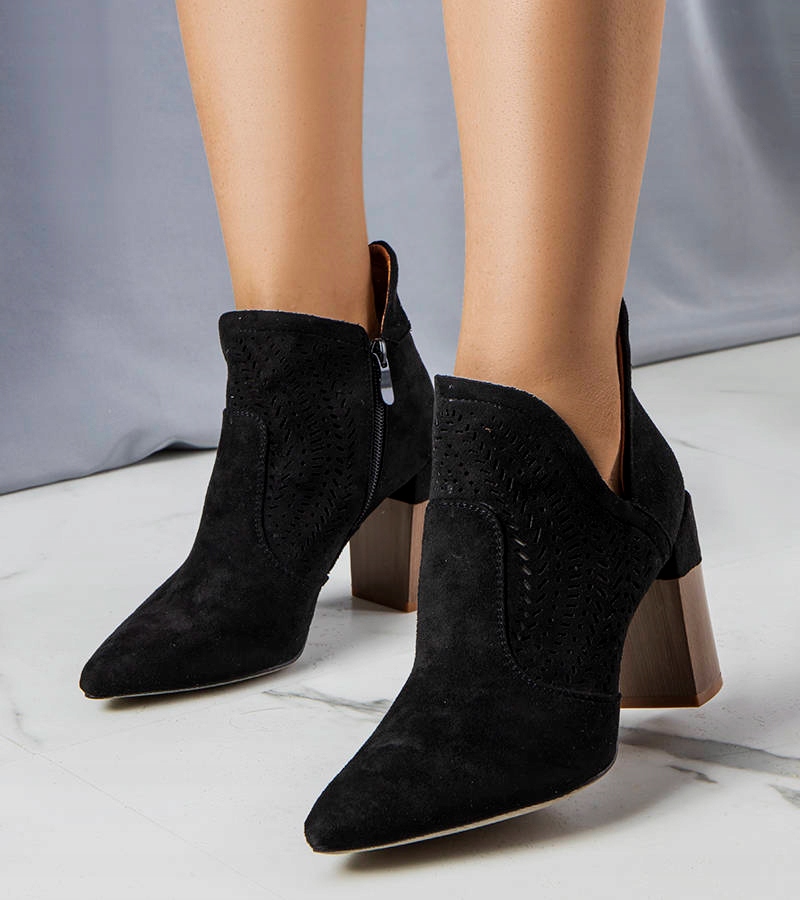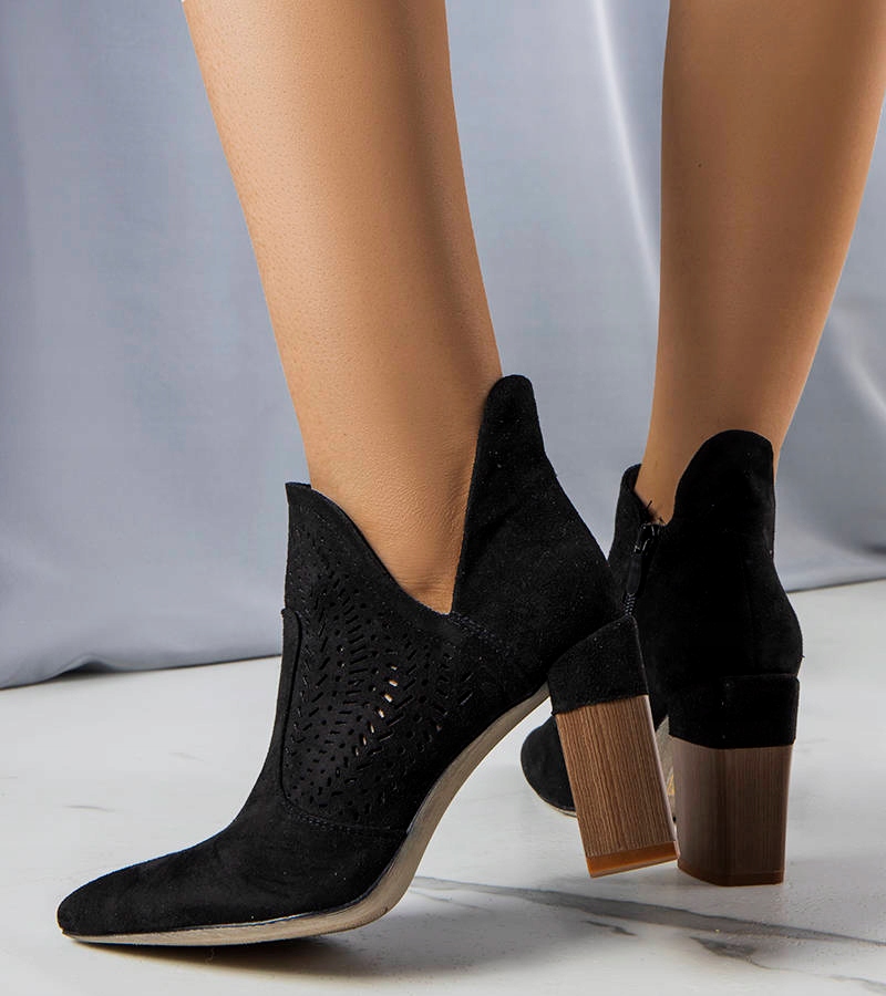 Zjawiskowy model Hachée z pewnością zachwyci wiele z nas. Niski ozdobny obcas typu słupek idealnie dopełnia elegancki fason. Cholewka jest wykonana z wysokiej jakości skóry ekologicznej zamszowej ażurowej. Botki świetnie odnajdą się w towarzystwie płaszcza i wielu imprezowych stylizacji. Nosek w szpic optycznie wyszczupli nogi. Numeracja standardowa, prosimy kierować się swoim rozmiarem.