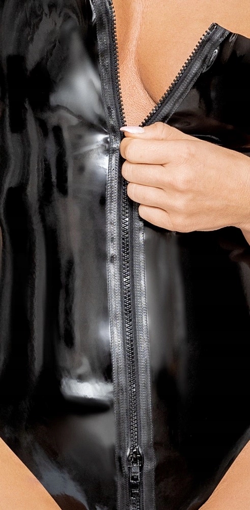 Basic z praktycznym zamkiem błyskawicznym! Proste i piękne czarne lateksowe body marki LateX ze stylowym kwadratowym dekoltem.