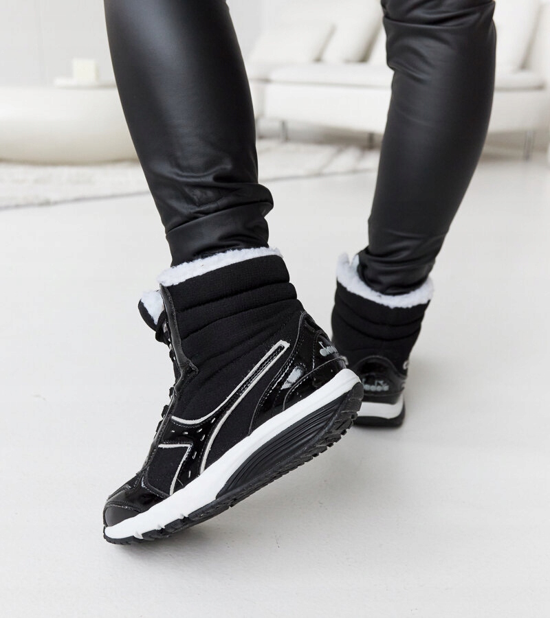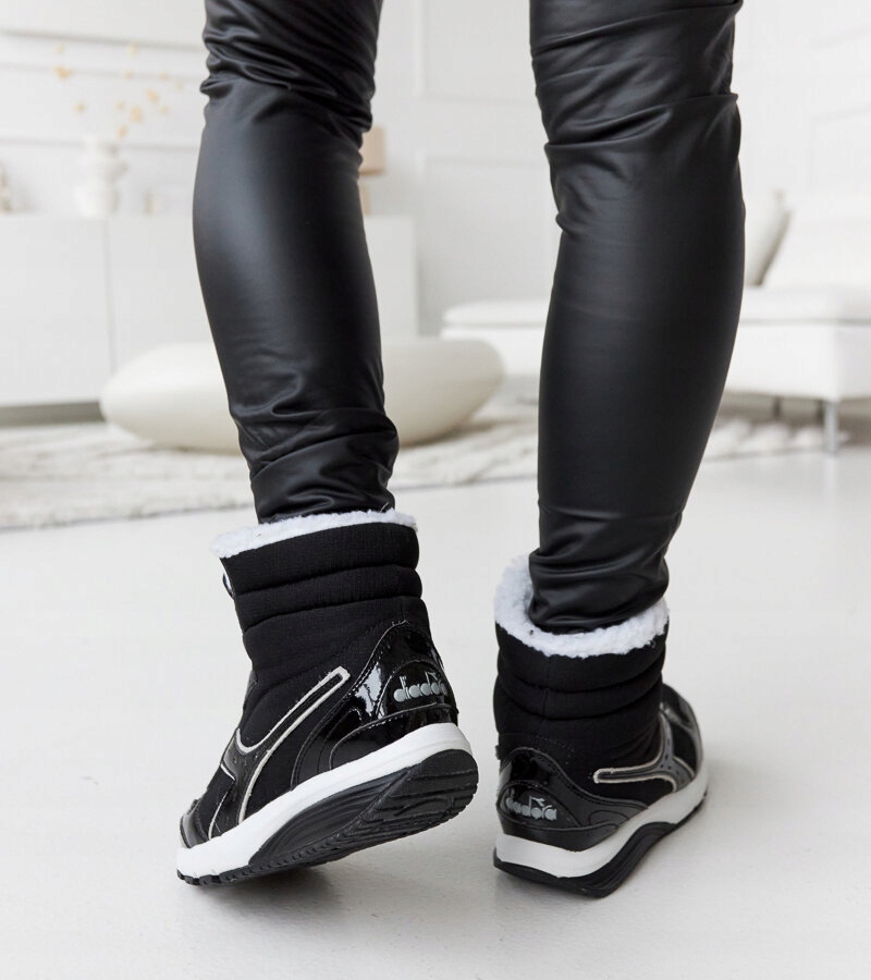 Czarne ocieplane sportowe śniegowce Diadora to idealny wybór dla wszystkich, którzy szukają stylowego i ciepłego obuwia na zimę. Te wysokie za kostkę buty są wyposażone w praktyczne sznurówki, które zapewniają doskonałe dopasowanie do stopy. Wykonane z wysokiej jakości gumy, gwarantują trwałość i ochronę przed wilgocią. Ocieplana wkładka sprawia, że stopa jest chroniona przed chłodem, a płaski obcas zapewnia stabilność podczas poruszania się po śliskich nawierzchniach. Dodatkowo, modele te charakteryzują się eleganckim szyciem oraz okrągłym nosem, co nadaje im modnego looku. Co więcej, cena tych śniegowców jest bardzo przystępna, co czyni je idealnym wyborem dla osób poszukujących taniego, ale jednocześnie wysokiej jakości obuwia na zimę.
