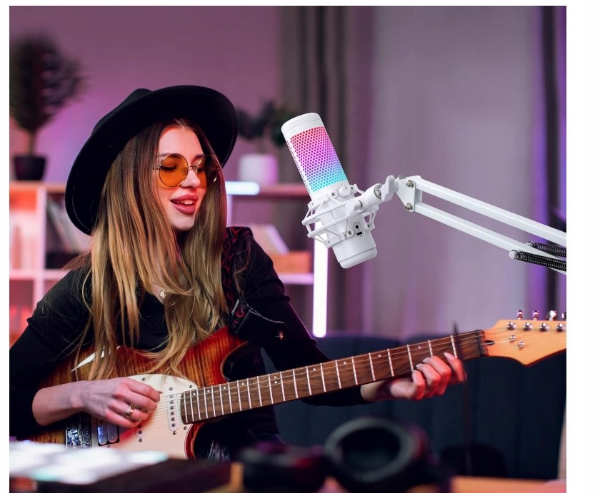 - 1 x biały stojak z wysięgnikiem HyperX Quadcast;