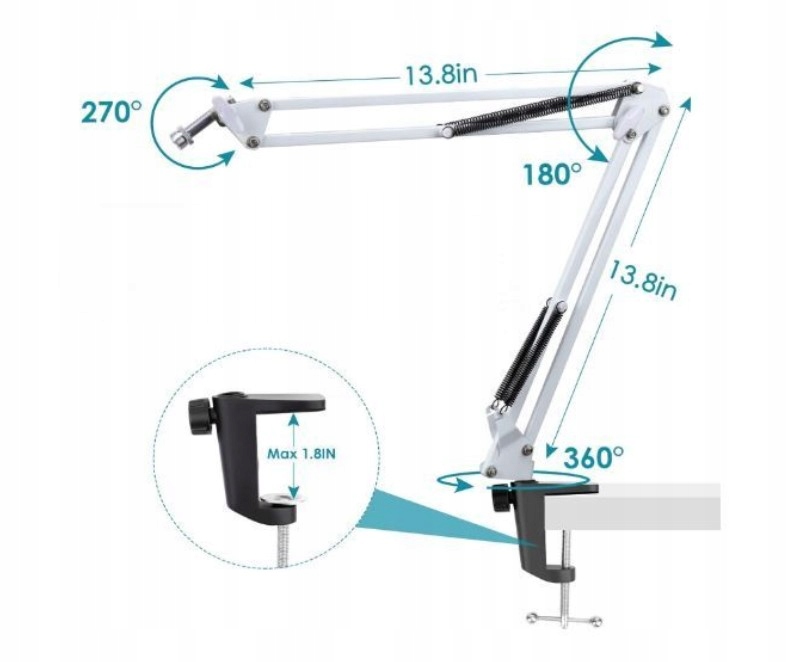 ✅Regulacja Pozycji: Elastyczne i łatwe w obsłudze ramię pozwala na precyzyjne ustawienie mikrofonu w odpowiedniej pozycji.