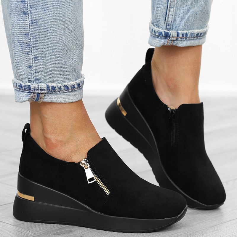 Czarne sneakersy na koturnie półbuty ZS978-1 r.41