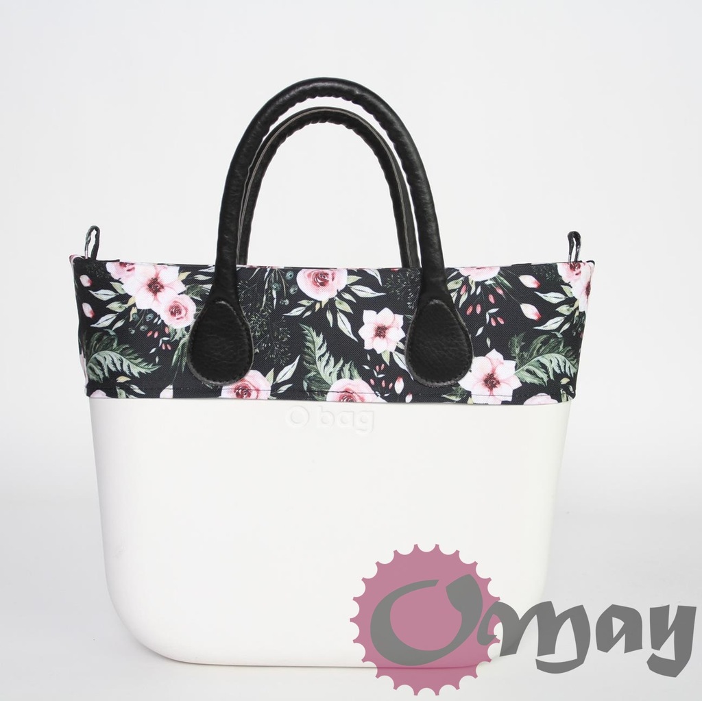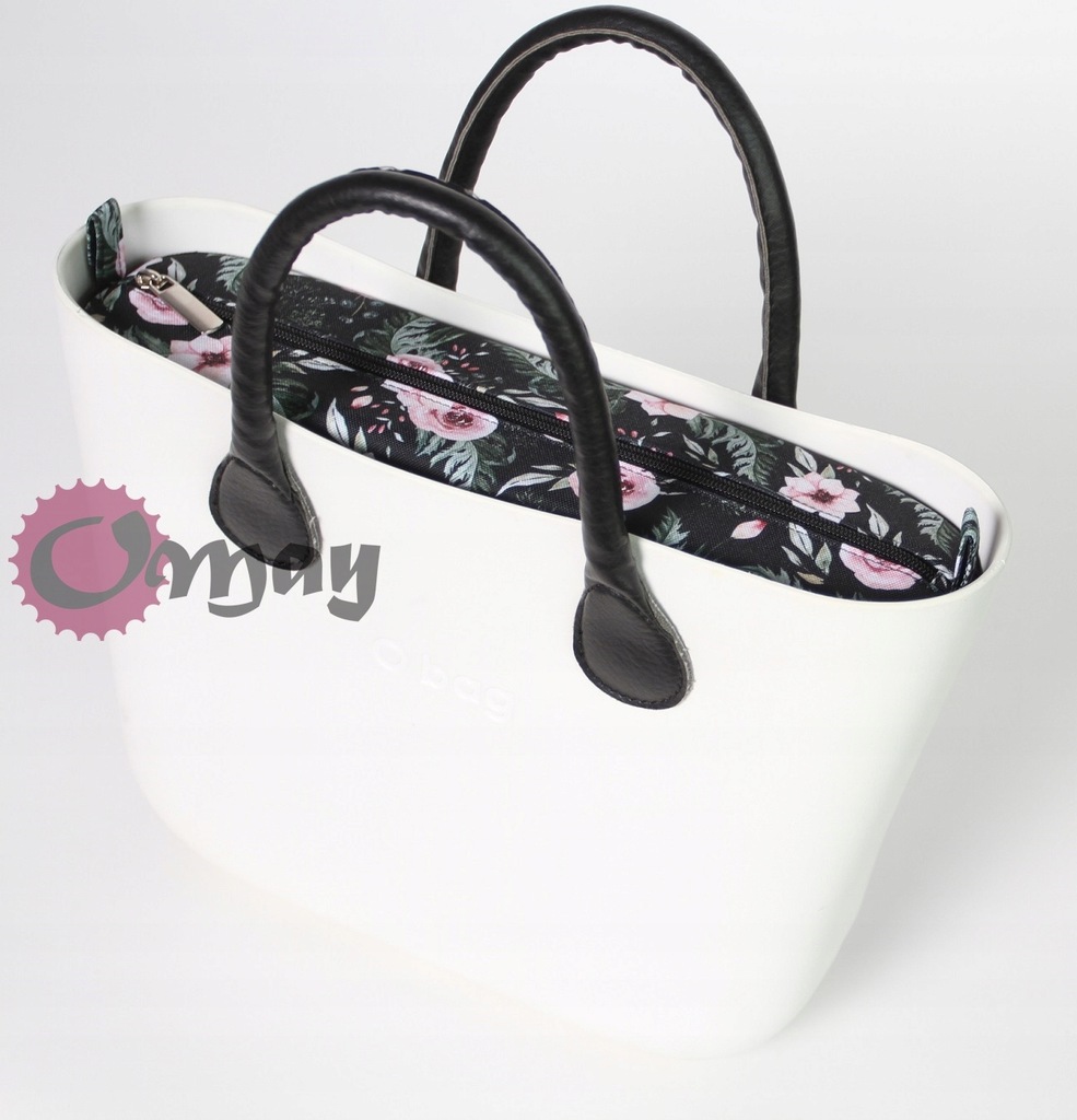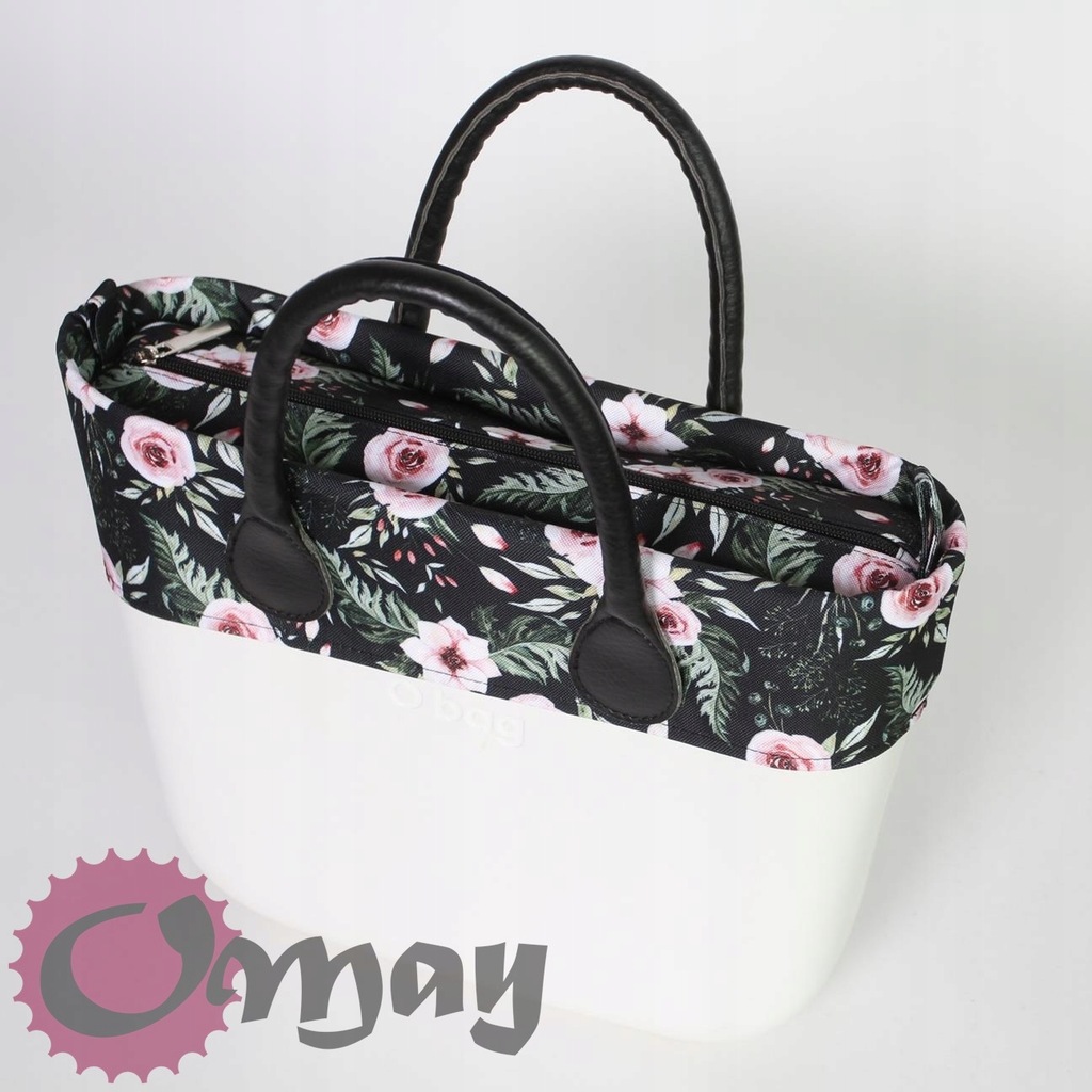 Czarny organizer do OBAG MINI +OPASKA pudrowe róże 2 kieszenie wkład OMAY