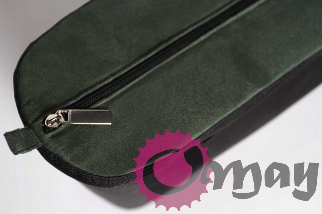 Organizer w wersji sztywniejszej - czarna dolna część, oraz zielony ekozamsz w odcieniu khaki na górze przy czarnym zamku.