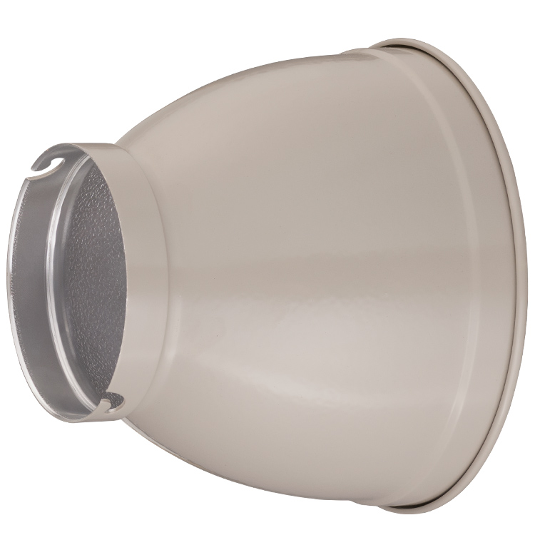 Czasza Jinbei 21cm 50° przeznaczona do lamp z mocowaniem Elinchrom. Sprawdzi się jako podstawowy modyfikator skupiający światło. Wewnętrzna powierzchnia o specjalnej fakturze sprawia, że strumień światła jest równomiernie odbity i poprowadzony w odpowiednim kierunku.