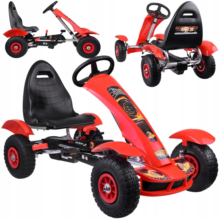 Czerwony sportowy GOKART na pedały dla dzieci do 50kg Pompowane koła SP0209