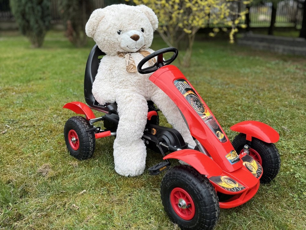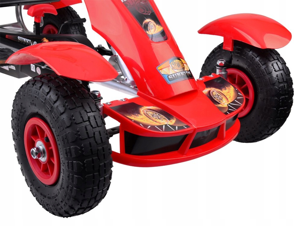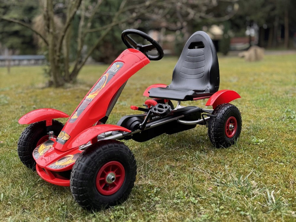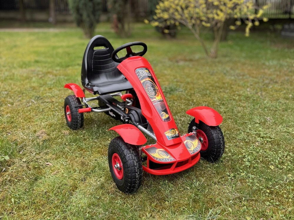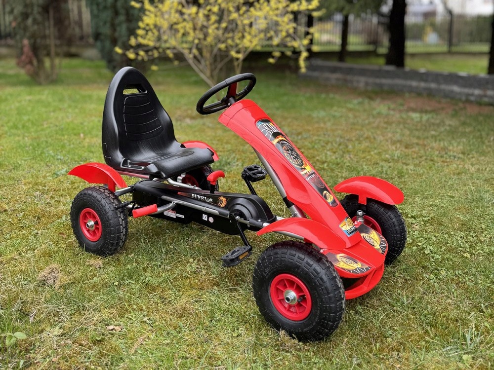 Czerwony gokart z pompowanymi kołami - idealny wybór dla aktywnych dzieci