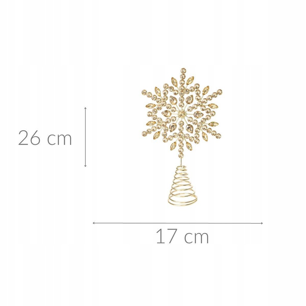 - Ozdoba świąteczna: Złoty czubek na choinkę to wyjątkowa ozdoba, która nada twojej choince niesamowity blask. Wyjątkowy wzór, w formie śnieżynki zdobionej błyszczącymi cyrkoniami, zachwyca i przyciąga wzrok.
