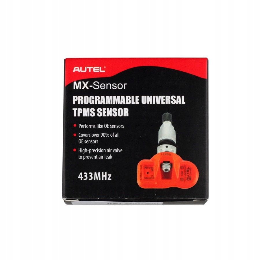 Czujnik ciśnienia MX-SENSOR AUTEL 433MHz stosowany do aut produkowanych na rynek europejski. MX Sensor® to uniwersalny programowalny bezprzewodowo czujnik TPMS. Przy użyciu urządzeń Autela, czujnik może być przeprogramowany oraz aktywowany dla wybranego pojazdu. Sensor można zaprogramować do ok. 90% aut dostępnych na rynku, wyposażonych w system TPMS. Czujniki MX Sensor® mogą być zamiennikami dla uszkodzonych lub niedziałających oryginalnych czujników bez potrzeby przeprogramowania komputera w aucie. Mogą być użyte w drugim zestawie kół i będą zachowywały się jak czujniki oryginalne. Sensory można zaprogramować jako zamienniki, które będą pasowały do podanego modelu auta, jednakże będą posiadały inny numer ID. Można również wykonać duplikat oryginalnego czujnika, przy użyciu tego samego ID.