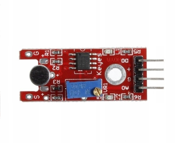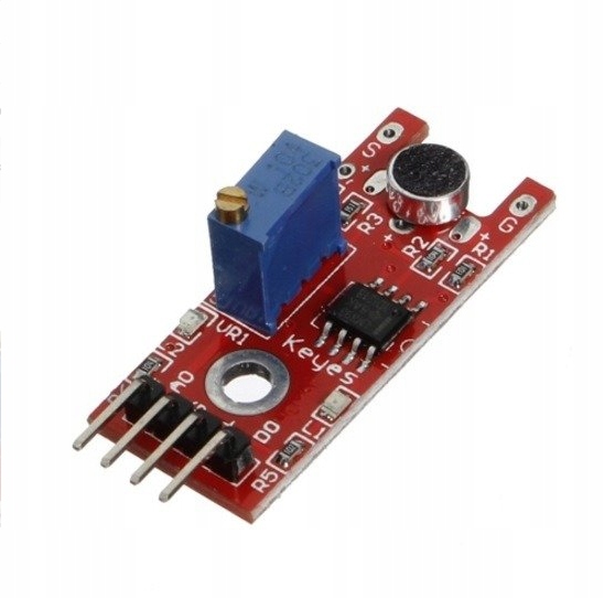 Moduł czujnika dźwięku oparty na układzie LM393 z precyzyjną regulacją czułości. Prosty układ do wykonania wielu urządzeń sterowanych dźwiękiem (np wyłącznik światła na klaśnięcie).