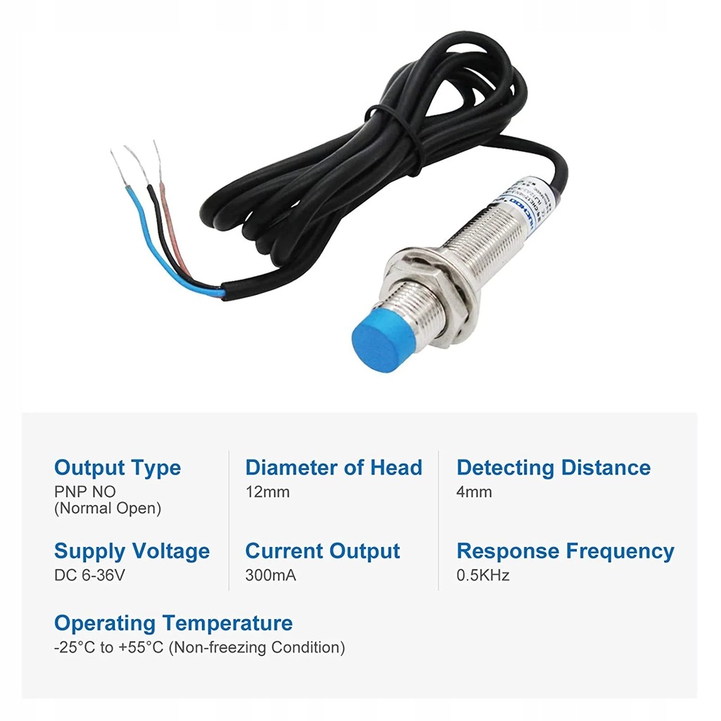 Czujnik indukcyjny zbliżeniowy normalnie otwarty, działający w zakresie napięć od 6V do 36V potrafiący wykrywać z odległości 4mm obiekty metalowe magnetyczne i niemagnetyczne. Z powodzeniem może zastępować inne typy czujników krańcowych. Nadaje się do zastosowania w drukarkach 3d oraz tokarkach i CNC itp.