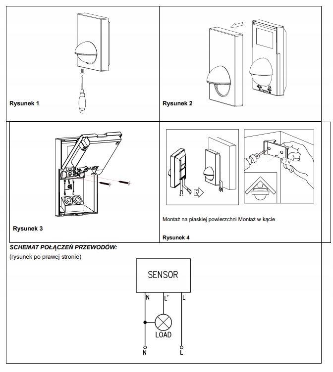 Czujnik Ruchu Na Podczerwień. Kąt Widzenia: 180°. Zasilanie: 110-130V/Ac, 220-240V/Ac.
