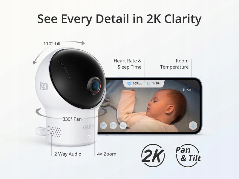 Wyraźny obraz w dzień i w nocy: uchwyć delikatne szczegóły w krystalicznie czystej rozdzielczości 2K i zobacz wszystko, co dzieje się w pokoju dziecka. Kamera jest wyposażona w nieinwazyjny noktowizor, który umożliwia dokładne monitorowanie nawet w nocy.
