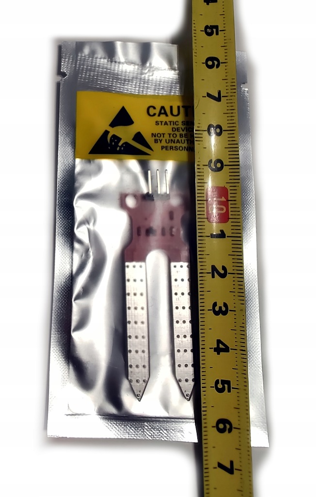 Prosty czujnik wilgotności gleby. Posiada analogowe wyjście które można podłączyć np. do wejścia analogowego w Arduino. Mierząc poziom napięcia, można określić poziom wilgotności gleby.