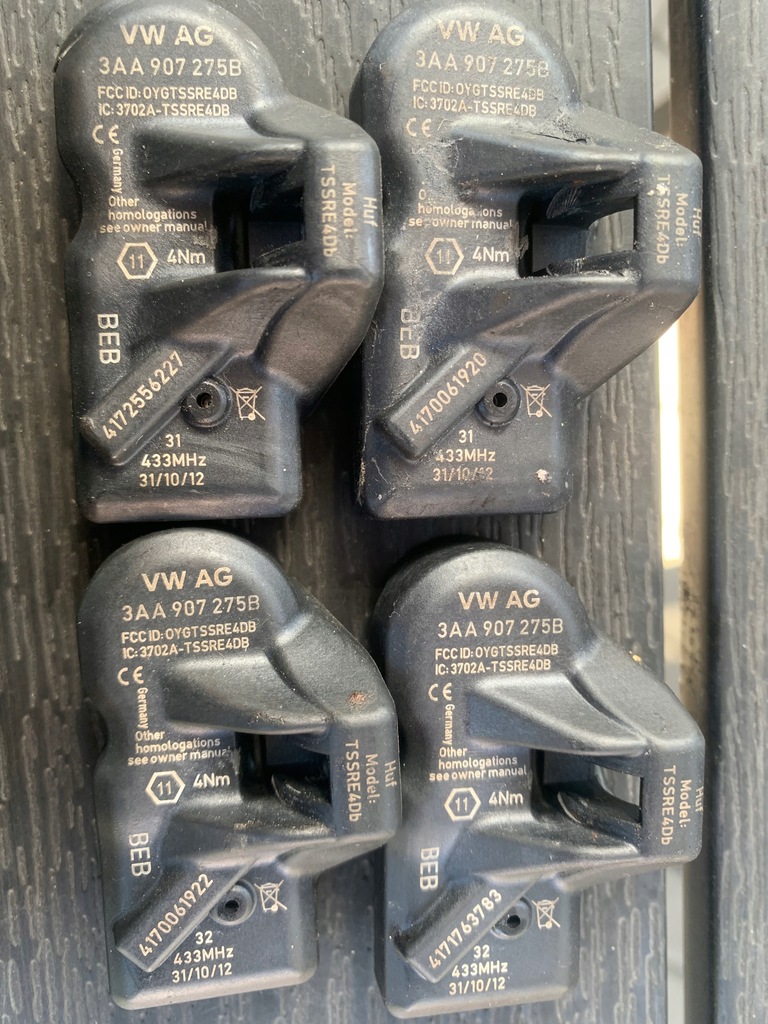 czujniki ciśnienia powietrza TPMS oryginał VW AG nr katalogowy 3AA907275B - sprawdzone , gotowe do zamontowania , sprawna bateria - możliwość montażu i pełny serwis w zakresie programowania.