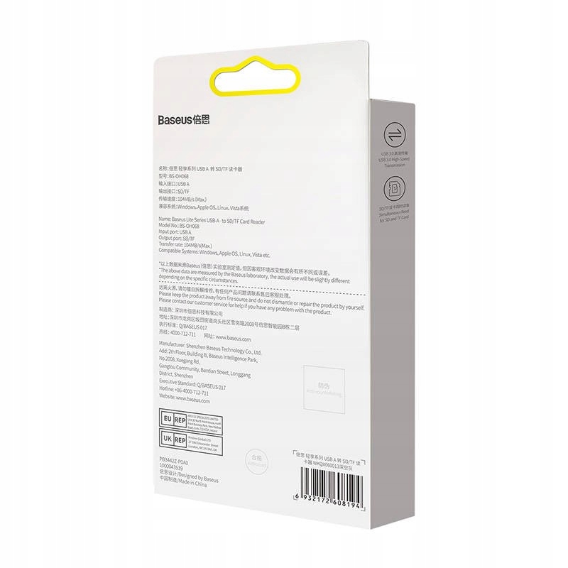 Czytnik kart pamięci Baseus posiada interfejs USB3.0 i gwarantuje szybki transfer danych, dzięki czemu w krótkim czasie prześlesz potrzebne Ci pliki — maksymalna prędkość wynosi nawet 104 MB/s. Atutem jest też duża pojemność, bowiem czytnik obsługuje karty pamięci o maksymalnej pojemności 2 TB.