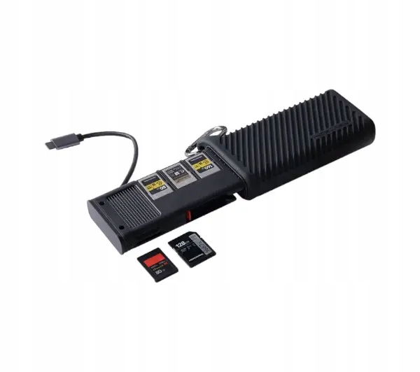 Producent PGYTECH Model P-GM-164 Kolor Czarny Materiał Stop aluminium + ABS + silikon Prędkość transferu 10 Gbps Wodoodporność IP54 Waga 198 g Wymiary 130 x 75 x 27 mm Kompatybilność Urządzenia: kamery, smartfony, drony, kamery sportowe; Karty pamięci: UHS-II, SD 4.0: UHS-II, SDXC, SDHC, SD; UHS-I, SDXC, SDHC, SD; UHS-II, micro SDXC, micro SDHC, micro SD; UHS-I, micro SDXC, micro SDHC, micro SD;