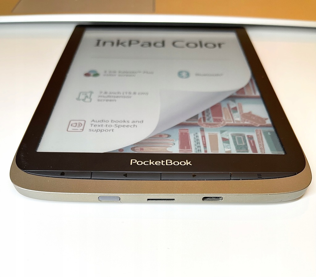 Czytnik e-booków PocketBook InkPad Color jest wyposażony w ekran większy niż w przypadku większości tego typu urządzeń – długość jego przekątnej wynosi aż 7,8 cala, co w praktyce oznacza, że jest na nim wyświetlane nawet o 30% więcej treści. Ponadto na wyświetlaczu takich rozmiarów możliwe jest dostrzeżenie stosunkowo drobnych detali (szczególnie istotnych w przypadku między innymi komiksów lub wykresów) bez konieczności powiększania ekranu.