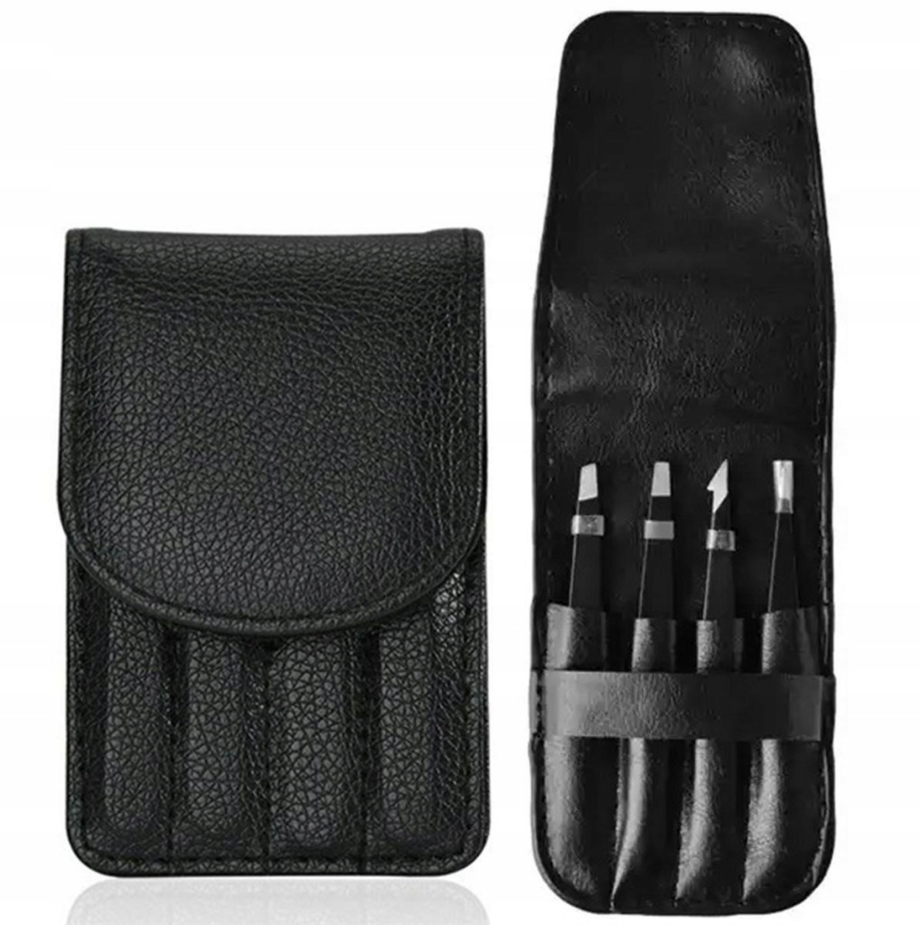 Zestaw 4 profesjonalnych pęset do regulacji rzęs i brwi. Wykonane z solidnej i trwałej stali nierdzewnej. Wyposażone w długą i wygodną rękojeść która ułatwia modelowanie. W komplecie znajduje się również etui z ekoskóry, umożliwiają ich przechowywanie.