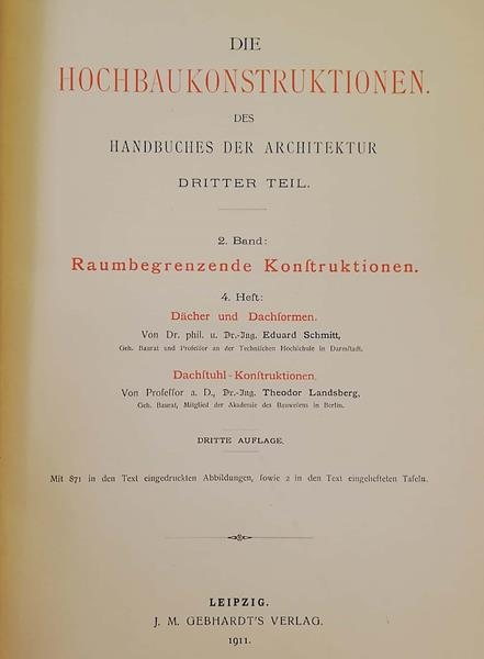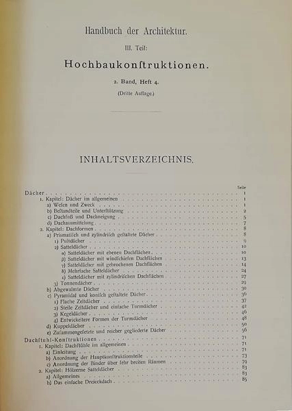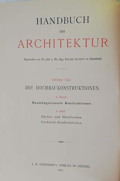 INFO: Die Hochbaukonstruktionen des Handbuches der Architektur, band 2: Raumbergrenzende Konstruktionen, heft 4: Dacher und Dachformen, Dachstuhl - Konstruktionen; książka po niemiecku, wymiary - 18,5 x 26,6 cm