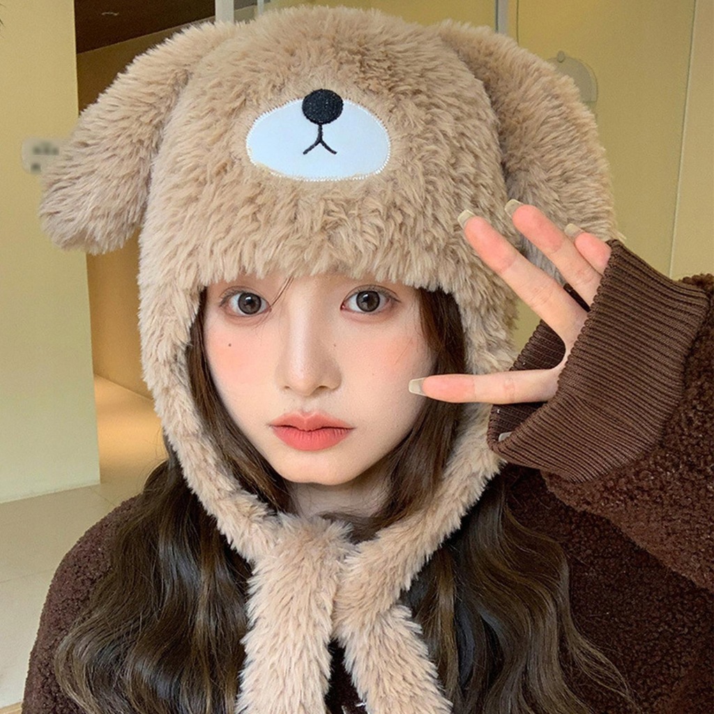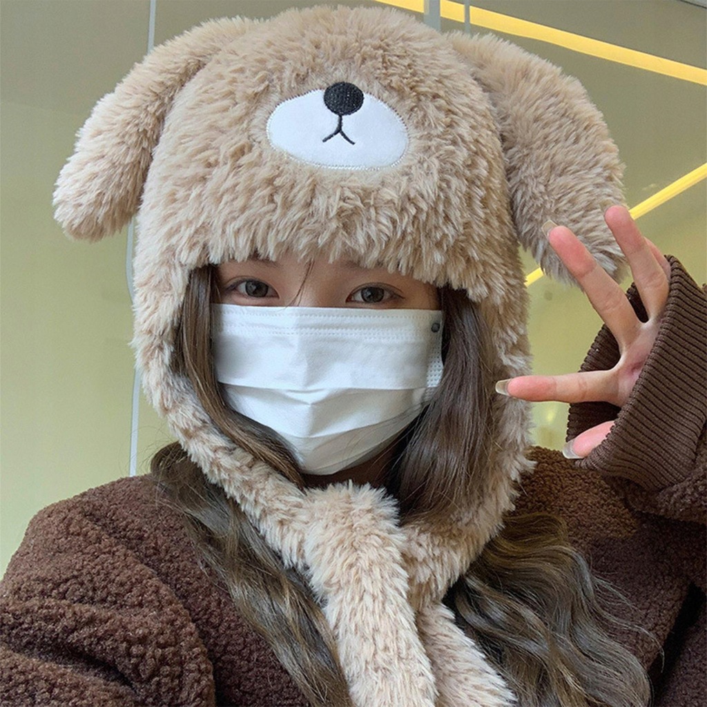 Damska czapka zimowa dziewczęca z nausznikami czapka z czaszkami kreskówka pluszowa czapka kawowa