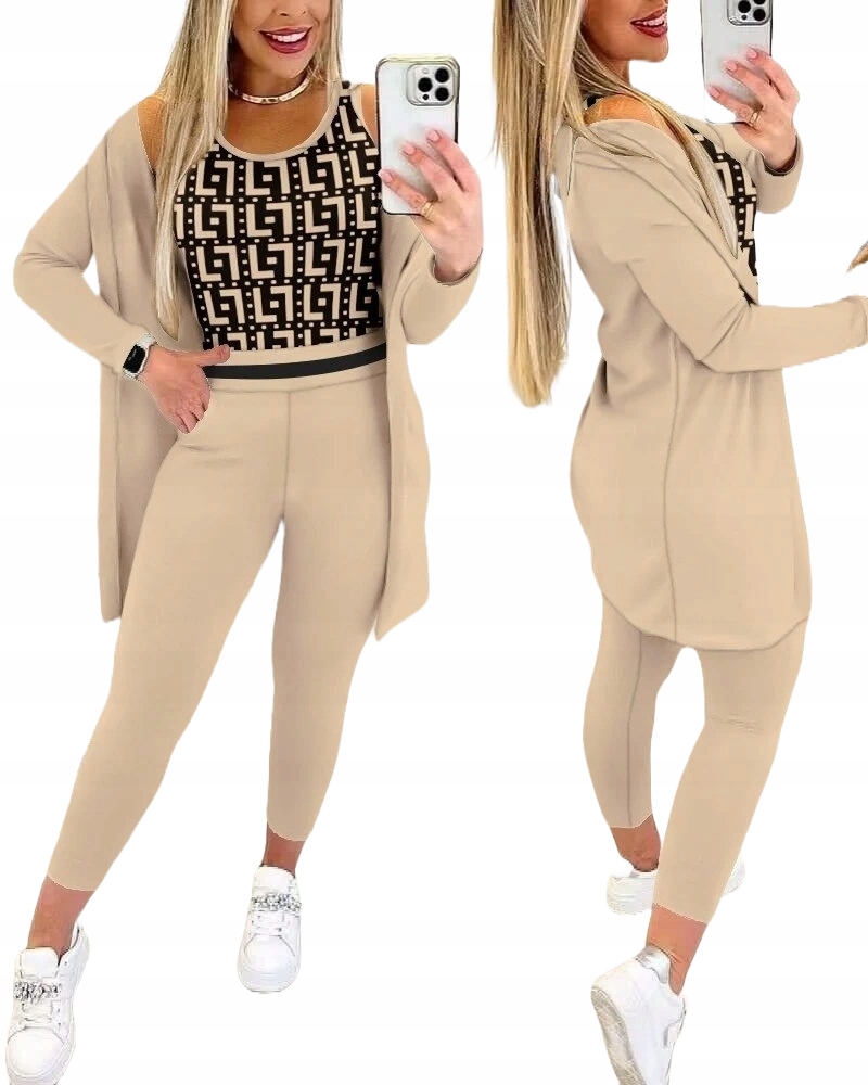 Damski Trzyczęściowy Garnitur Z Krepy Z Długim Rękawem
