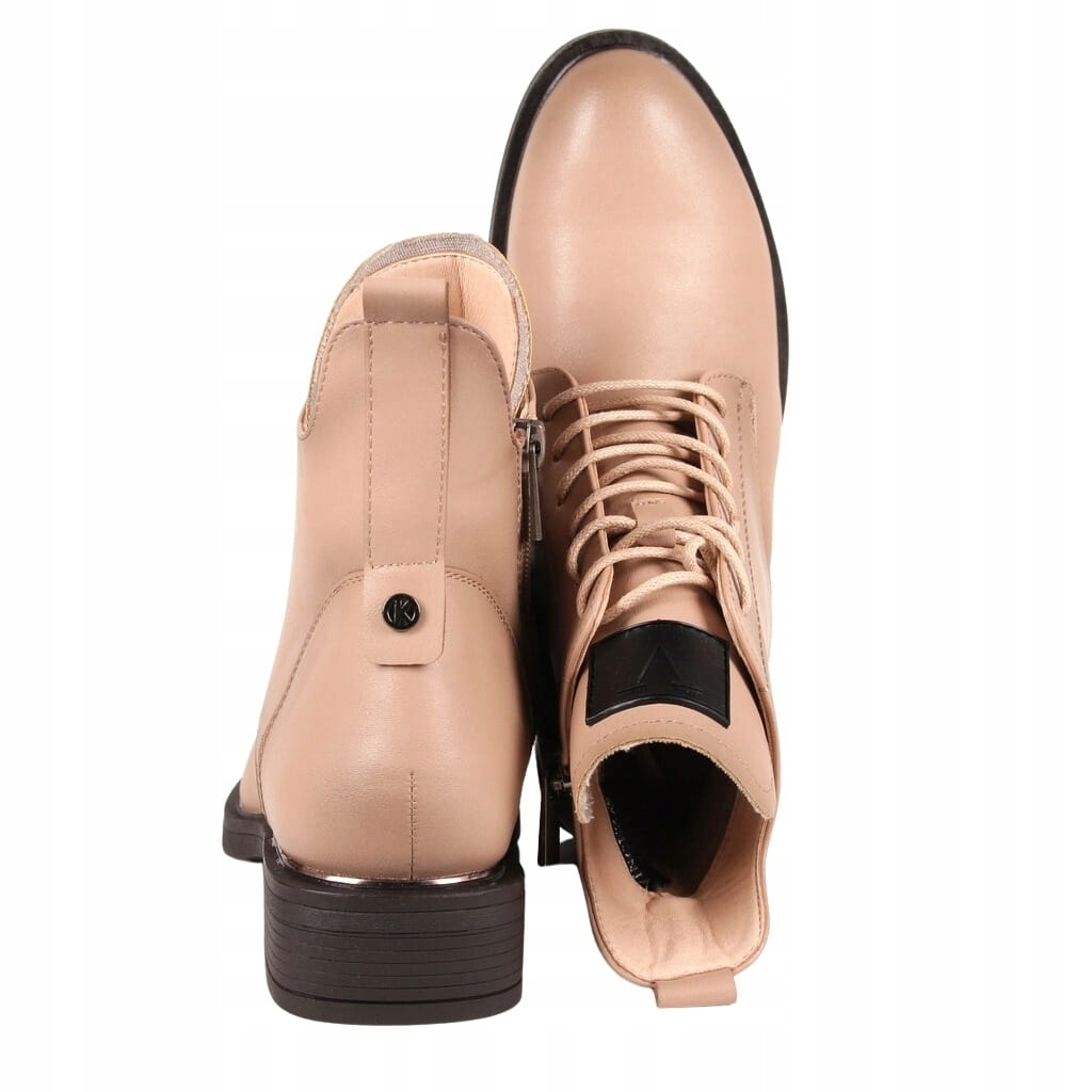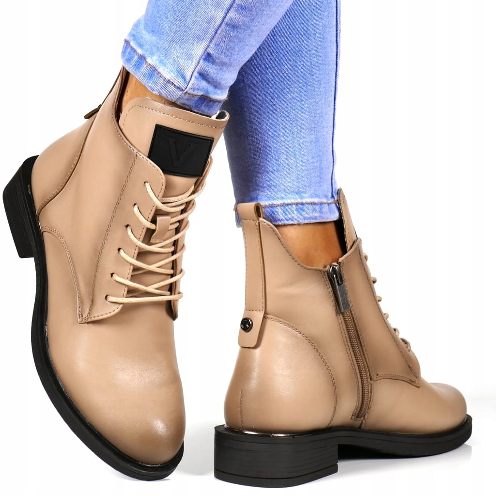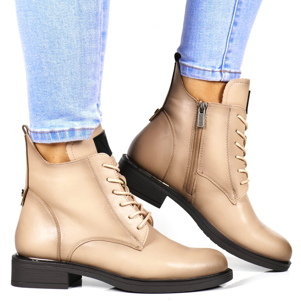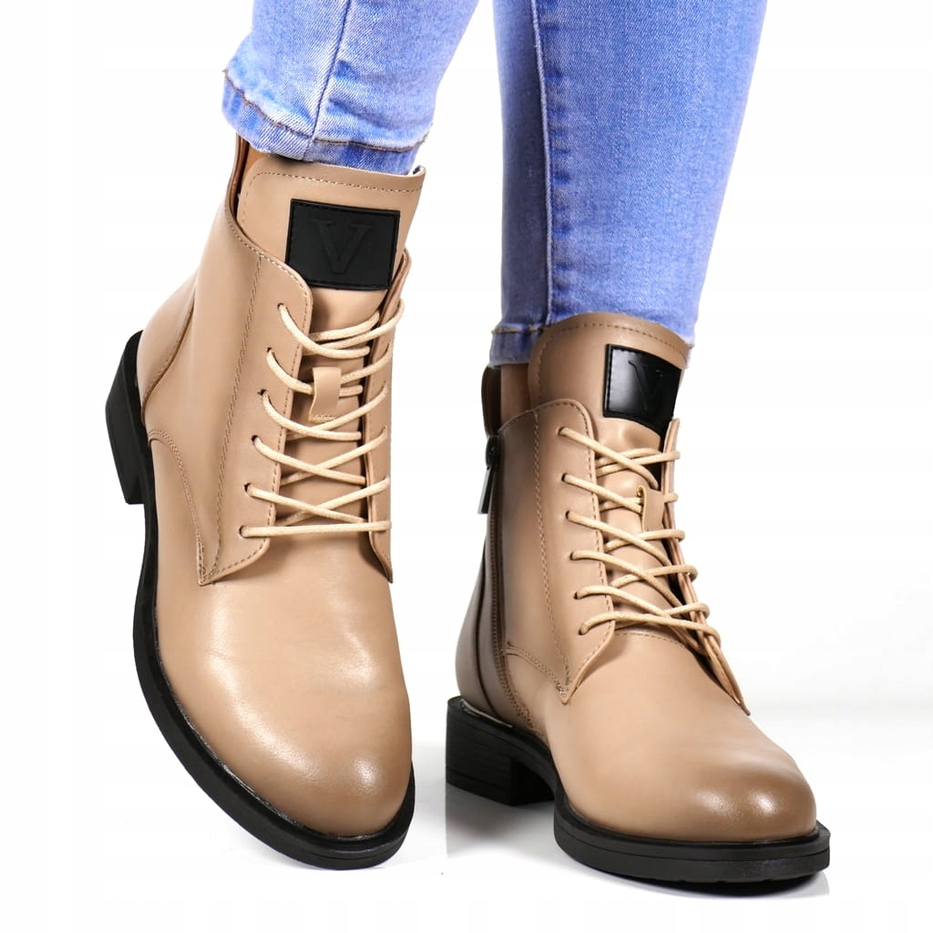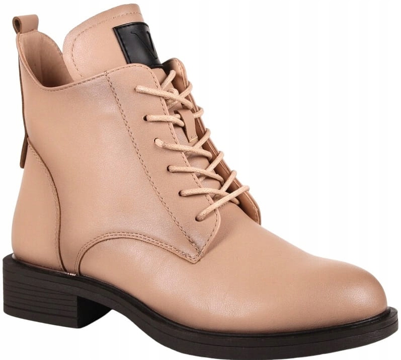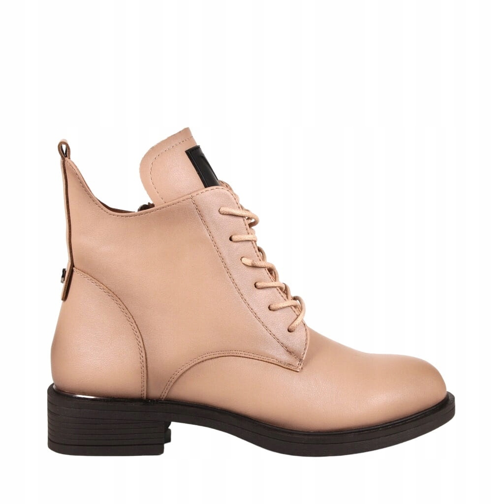 MODNE DAMSKIE BOTKI TRZEWIKI NA PŁASKIM OBCASIE BEŻOWE