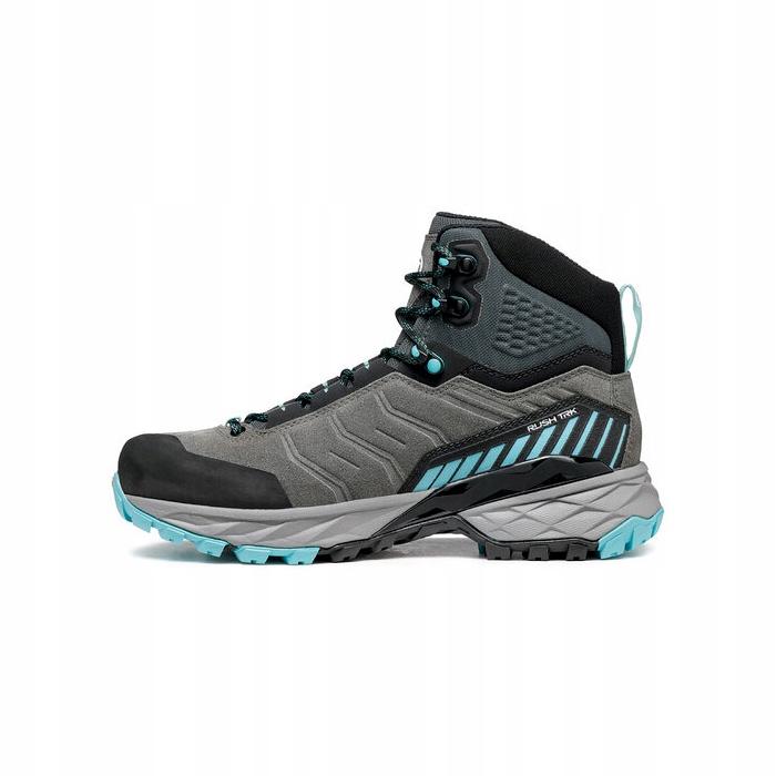Damskie buty trekkingowe RUSH TRAIL GTX WOMAN to wysokie, nieprzemakalne buty turystyczne przeznaczone do krótszych i dłuższych wędrówek pieszych, także wielodniowych wypraw z cięższym plecakiem. Buty z serii Rush zaprojektowano i wykonano we włoskim regionie Asolo, w wytwórni renomowanego producenta obuwia górskiego - w firmie Scarpa. Podczas ich tworzenia butów skupiono się na uwzględnieniu anatomicznej budowy kobiecej stopy, tak aby ich użytkowniczka w pełni mogła się cieszyć komfortem podczas górskiej wędrówki.