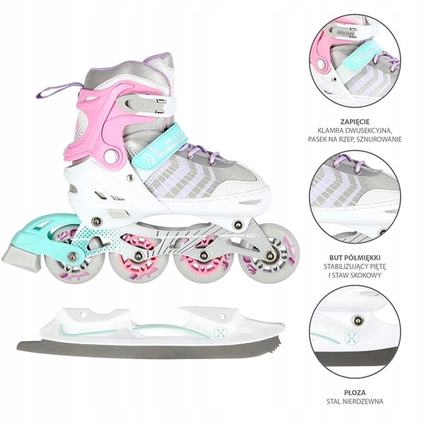 ⚡NH18192 4w1 RÓŻOWY ROZM.L(39-43) ŁYŻWOROLKI Z WYM. PŁ. FIGUROWĄ NILS EXTREME⚡