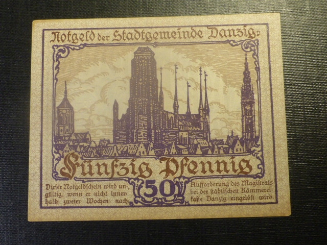 - Gdańsk, 50 pfennig – 15 kwiecień 1919 roku