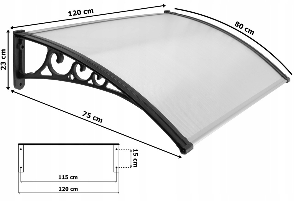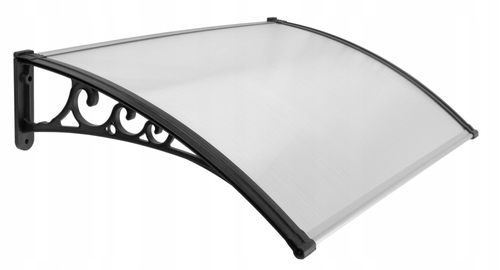Elegancki czarny kolor konstrukcji pasuje do nowoczesnych i klasycznych fasad budynków. Doskonały do domów, biur, lokali usługowych - wszędzie tam, gdzie potrzebujesz zadaszenia wejścia.