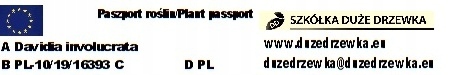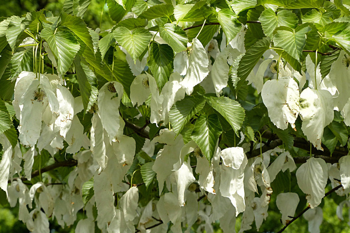 Malownicze drzewo dorastające do około 10 metrów wysokości. Korona szeroka i rozłożysta. Liście pojedyncze, szerokojajowate, jesienią przebarwiają się na żółty kolor. Atrakcją tego drzewa są kwiatostany, pojedynczy kwiatostan ma kształt kulistej główki i składa się z licznych kwiatów męskich otaczających jeden kwiat żeński. Ozdobę stanowią 2 białe, zrośnięte podsadki. Całość prezentuje się bardzo okazale i daje roślinie potoczną nazwę "chusteczkowe drzewo". Preferuje stanowisko słoneczne oraz półcień. Małe wymagania glebowe. Polecany do sadzenia w ogrodach oraz parkach.
