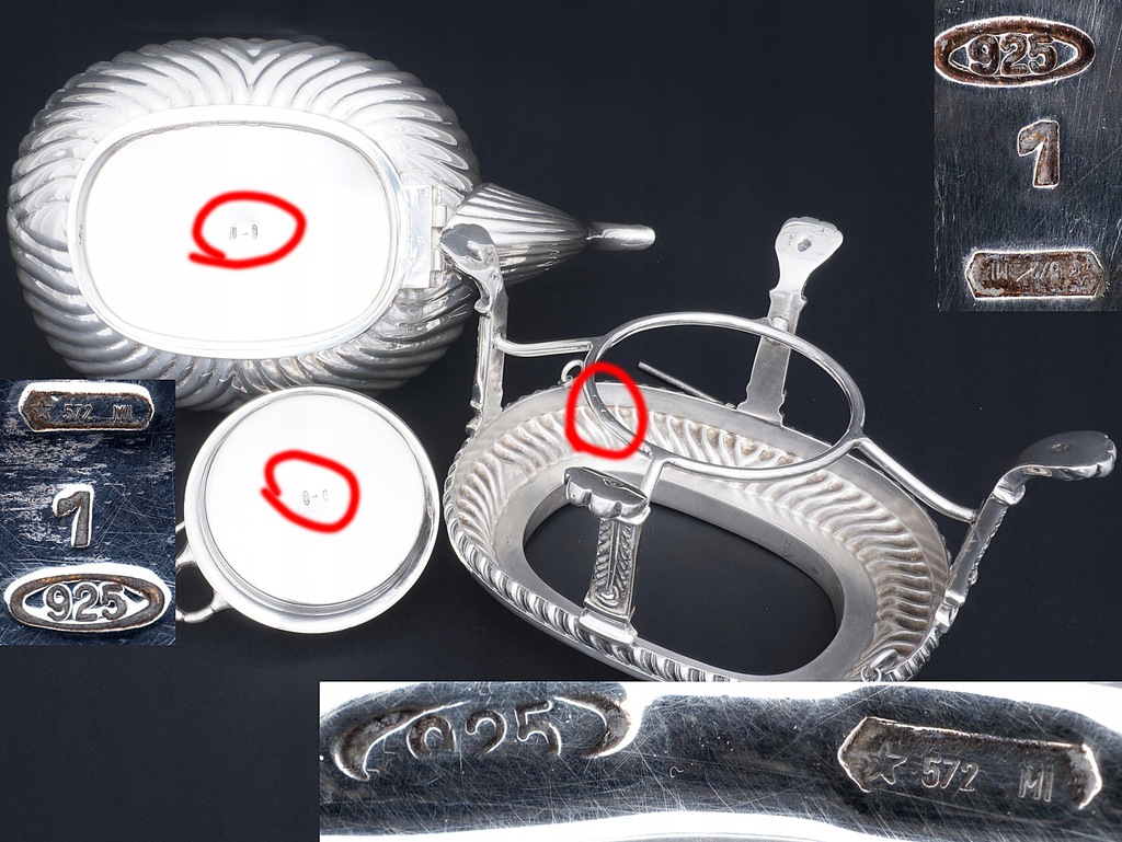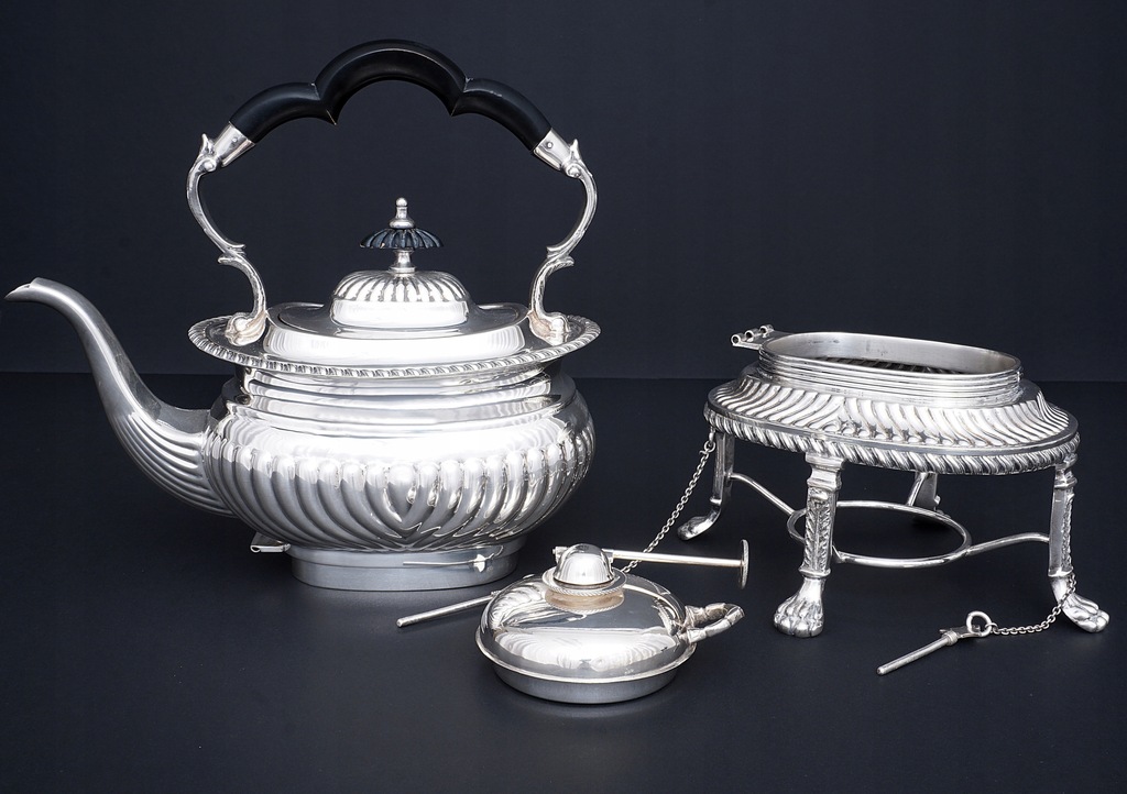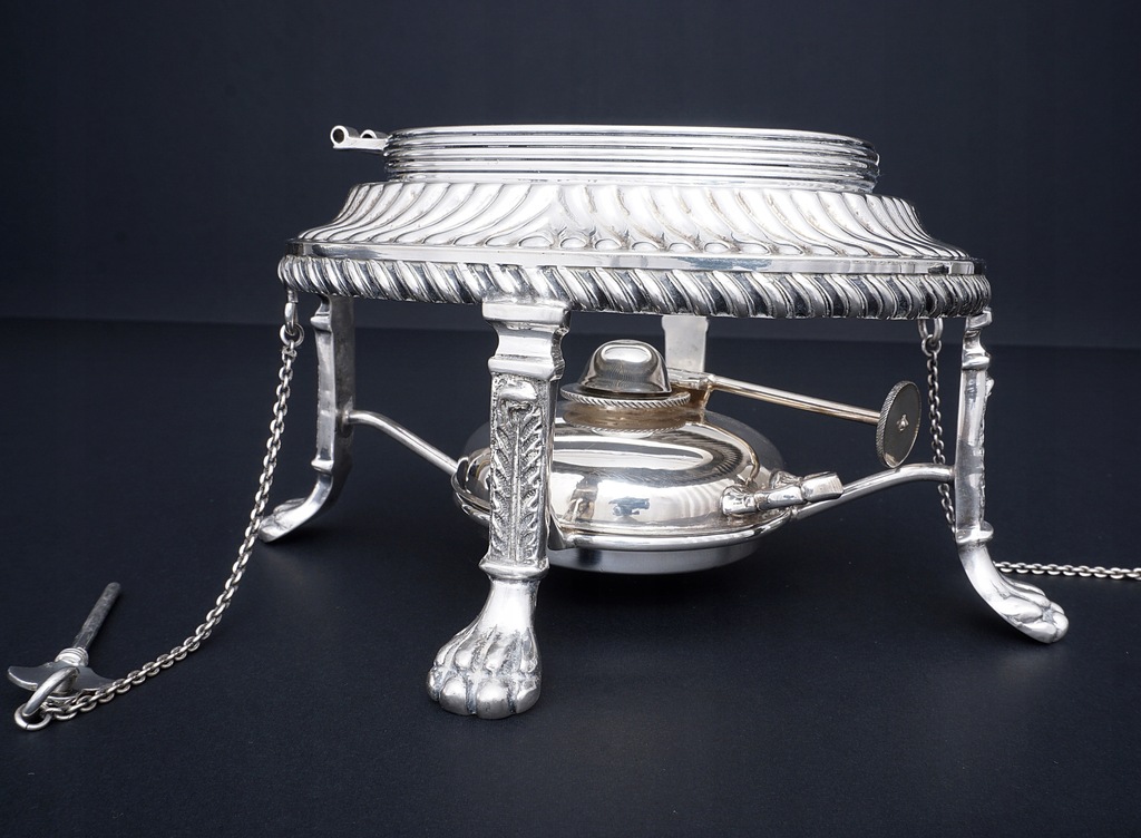 Dzban z podgrzewaczem wykonany ze srebra próby 925/1000.