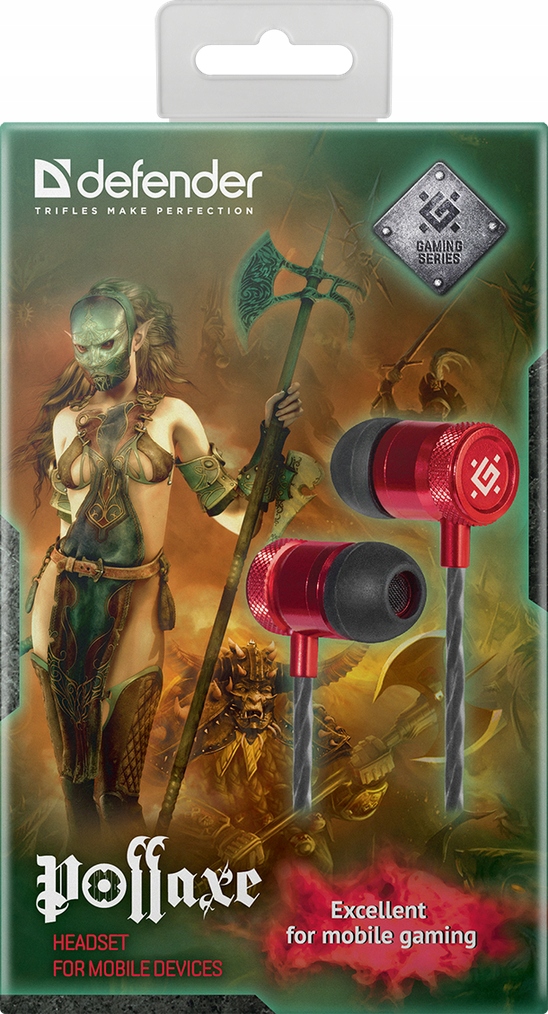 Defender Pollaxe, słuchawki z mikrofonem, regulacja głośności, czarno-czerwona, 2.0, douszne, 3.5 mm jack