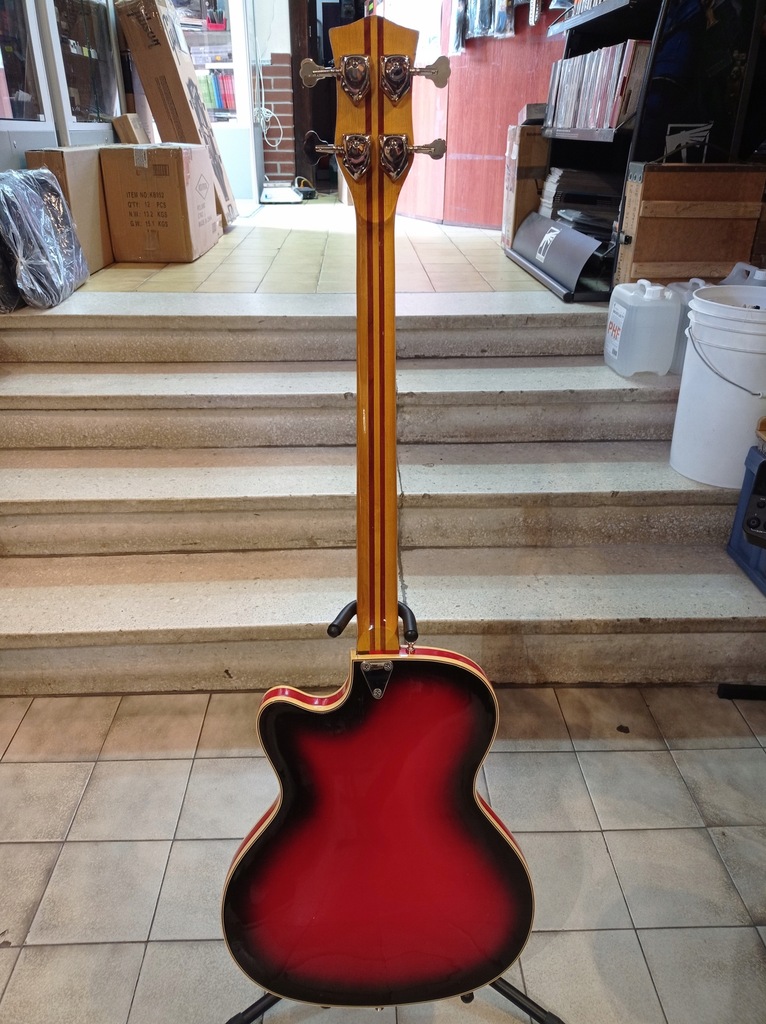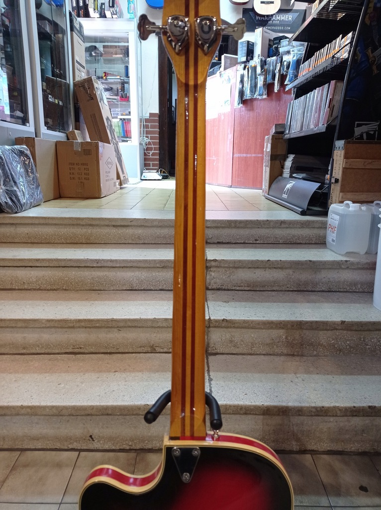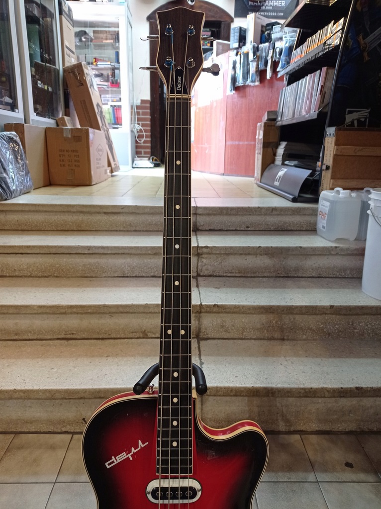 Defil Mambo - to rewelacyjna kultowa już czterostrunowa gitara basowa od polskiej marki Defil ( Dolnośląska Fabryka Instrumentów Lutniczych DEFIL w Lubinie ). Kawał historii polskiego lutnictwa. Czas produkcji serii Mambo przypada na 1968-1974 rok. Ten model został wyprodukowany w 1970 roku. Elektronika w gitarze jest w pełni sprawna. Progi zostały przesuwane po to żeby instrument w pełni stroił. Na instrument została położona nowa warstwa lakieru. Struny zostały zostały zmienione niedawno na nowe. Instrument jest dobrze ustawiony do gry przez lutnika.