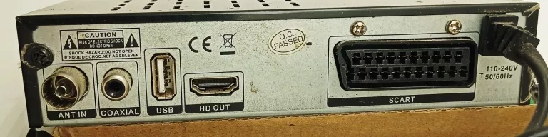 CPU: GX6702S5Pamięć wewnętrzna: 32 MbRAM: 512 Mb DDR2Konektor ANT: IEC-żeńskiZakres częstotliwości:(VHF) 170~230 MHz(UHF) 470~862 MHzCzułość głowicy : 78,5 dBDemodulacja: QPSK, 16QAM, 64QAM, 256QAMSzerokość pasma: 7 MHz, 8 MHzDekodowanie: MPEG-1, MPEG-2, MPEG-4, H.264, H.265, AAC, HE-AAC, AC-3, DD+Wejścia/wyjścia:USB 2.0HDMISCARTCOAXIAL2 x IEC konektor (ANT IN, Loop)Proporcja: Auto, 16:9 WS,16:9 PB, 16:9 PS; 4:3 LB, 4:3 PS, 4:3 FullObsługiwane formaty: MP3, WMA, JPEG, BMP, AVIRozdzielczość ekranu: 480i, 480p, 576i, 576p, 720p, 1080i, 1080pRozdzielczość wideo: 1920x1080 pxDekodowanie audio: MPEG-1 layerI/II, Dolby downmix 2 channel (License), AAC LC, HE-AAC v1/V2 , PCM downmix, IEC958 SPDIFSystem plików: FAT32, NTFSW pełni kompatybilny z DVB-T2/DVB-TAutomatyczne/ręczne wyszukiwanieAktualizacja oprogramowania: przez port USBWyświetlacz LEDPilot: 2x bateria AAAPobór mocy: Maks. 6 WPobór mocy w trybie czuwania: Maks. 1 WZasilacz: 110-240 V; 50/60 HzPort USB 2.0 (aktualizacja, PVR, odtwarzanie multimediów)Obsługiwane funkcje:7-dniowy przewodnik po programach (EPG)TimeshiftWielojęzyczne menuProgramowanie nagrywania (PVR)Wyświetlanie siły i jakości sygnałuLCN (Logiczny Numer Kanału)Podgląd kanałów TVKontrola rodzicielskaTimerTelegazetaLista ulubionych kanałówObsługiwane aplikacje:PogodaIPTVYouTubeRSSWymiary: 168 mm (szerokość) / 36 mm (wysokość)