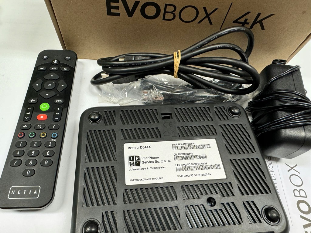 Witam, przedmiotem sprzedaży jest DEKODER NETIA EVOBOX 4K D64AX.