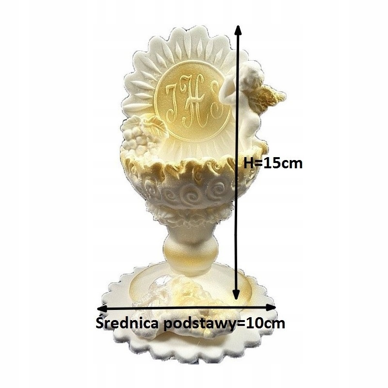 Fantastyczny stojący kielich komunijny koloru złotego to ozdoba przystosowana zarówno do dekoracji tortu jak również do postawienia na stół.
