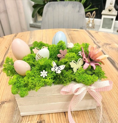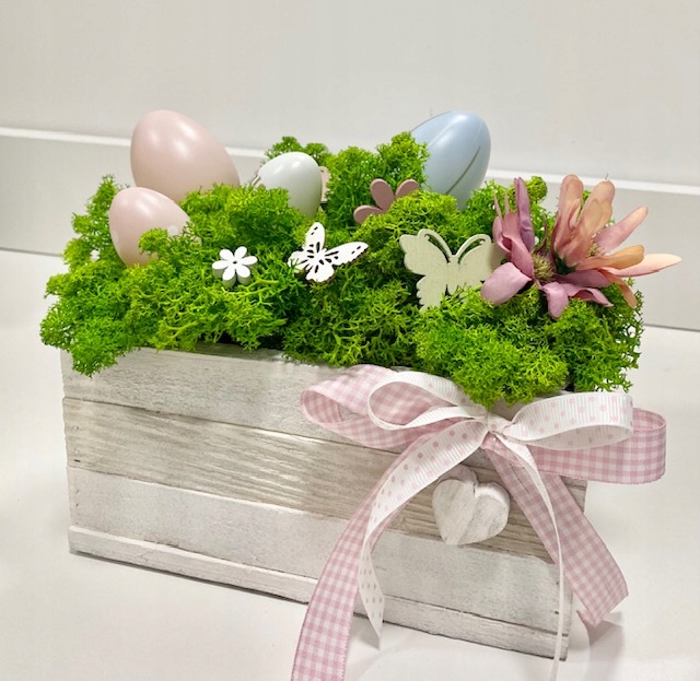 Podkład to stabilizowany chrobotek reniferowy. Mech nawet po długim czasie nie zmieni swojej barwy i nie wyschnie, ponieważ wystarczy mu wilgoć z powietrza.