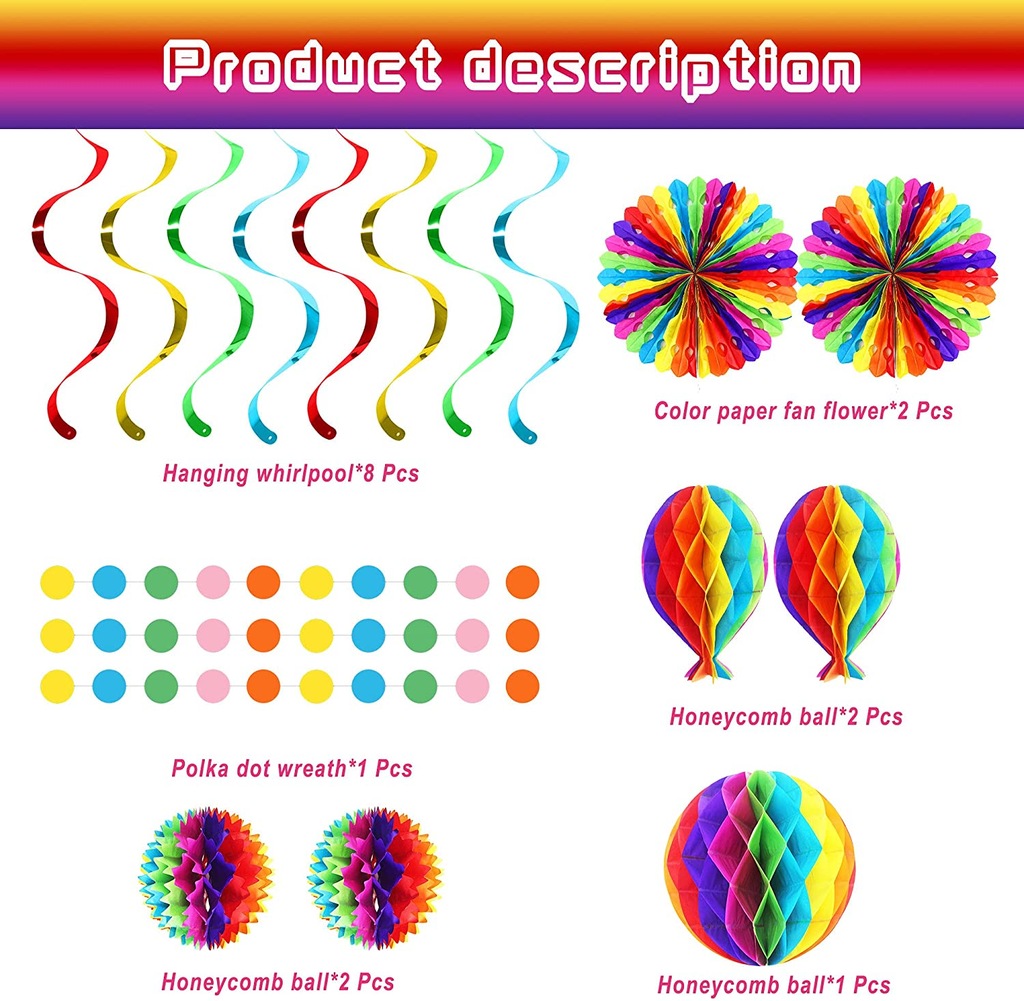 Łatwy w montażu: wszystkie dekoracje na przyjęcie urodzinowe wysyłane płasko i łatwe do zainstalowania, te banery i dekoracje o strukturze plastra miodu są wstępnie złożone i wstępnie przycięte, montuj dekoracje z przyjaciółmi lub rodziną.