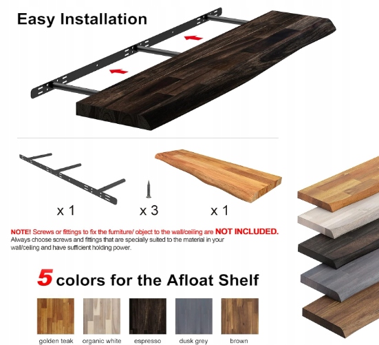 ✅ W zestawie znajdują się śruby do połączenia półki z uchwytem, ale śruby do montażu na ścianie nie są dołączone.
