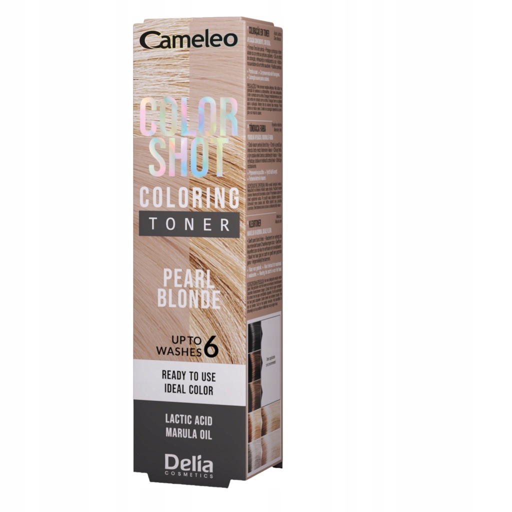 Delia Cameleo Color Shot Coloring Toner koloryzujący do włosów - Pearl Blonde Nie chcesz farbować włosów, ale pragniesz subtelnych zmian? Nasz nowy produkt został stworzony z myślą o osobach, które chcą odświeżyć kolor swoich włosów bez konieczności stosowania trwałej farby. Color Shot nie tylko zachowuje i przedłuża intensywność koloru między farbowaniami, ale również nadaje włosom subtelny, odświeżający odcień, który utrzymuje się do 6 myć. Dzięki wygodnej formie aplikacji, toner jest gotowy do użycia bez konieczności mieszania składników czy stosowania dodatkowych akcesoriów.