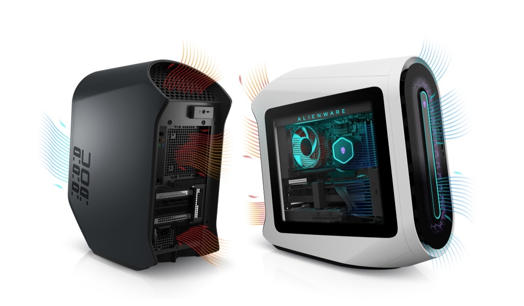 Innowacyjny przepływ powietrza: karta graficzna może działać jeszcze wydajniej również dzięki dwuosiowej konstrukcji wentylatora z tylnym kanałem rozprężnym — to pierwsza taka technologia stworzona z myślą o kartach graficznych w nowych komputerach Alienware. Tylny system eliminacji nadciśnienia wentylatora umożliwia odprowadzenie ciepła przez specjalnie rozmieszczone otwory wentylacyjne zaprojektowane tak, aby zapewnić jeszcze skuteczniejsze zarządzanie przepływem powietrza i temperaturą. To nowa technologia opracowana z myślą o graczach.