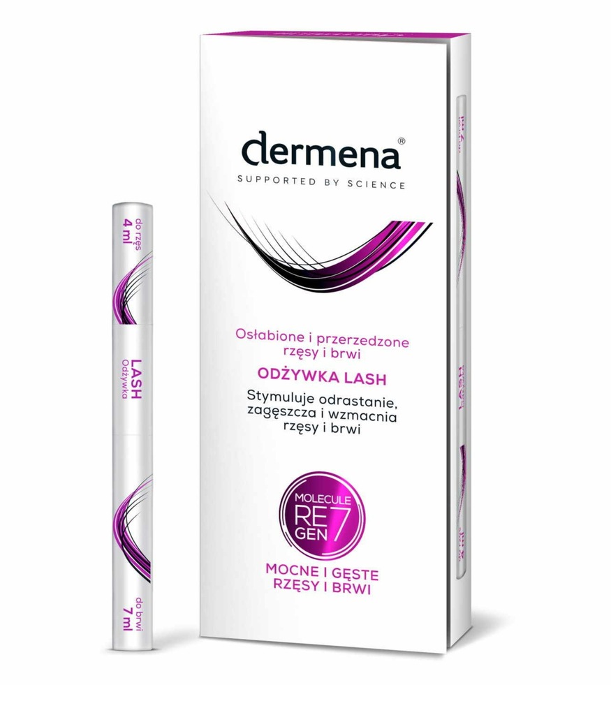 dermena® lash care to specjalistyczna linia preparatów dermokosmetycznych kierowana do problemu osłabionych, zniszczonych i przerzedzonych rzęs i brwi. Unikalny skład produktów, oparty o molekułę Regen7, zapewnia właściwą pielęgnację, wzmocnienie i regenerację rzęs i brwi. dermena® lash stymuluje odrastanie, zgęszcza i hamuje wypadanie rzęs i brwi. Polecana jest osobom o oczach wrażliwych.