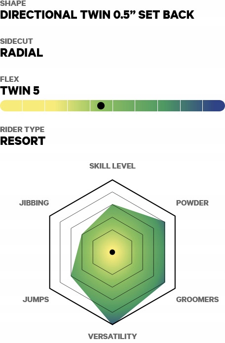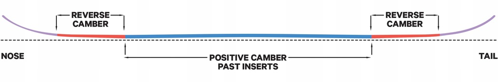 Profil RESORT V3 zapewnia to, co najlepsze z obu światów. Posiada podwyższoną platformę camber poprzez wstawki, aby utrzymać trzymanie krawędzi przy dużych prędkościach w zmiennym terenie, podwyższone punkty styku umożliwiające lądowanie i unoszenie się w puchu, a także tradycyjne łuki dziobów i ogonów zapewniające płynniejsze przejścia.