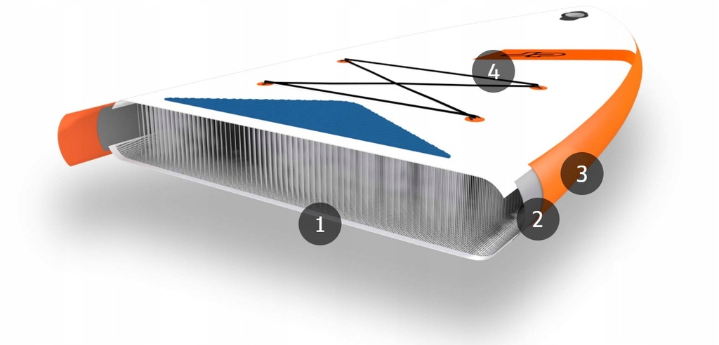 - Dwuwarstwowy Drop Stitch - Wewnętrzna warstwa PVC odpowiada za to, by Twoja deska JP była w 100% szczelna, a zewnętrzna powłoka gwarantuje sztywność, lekkość i wytrzymałość.